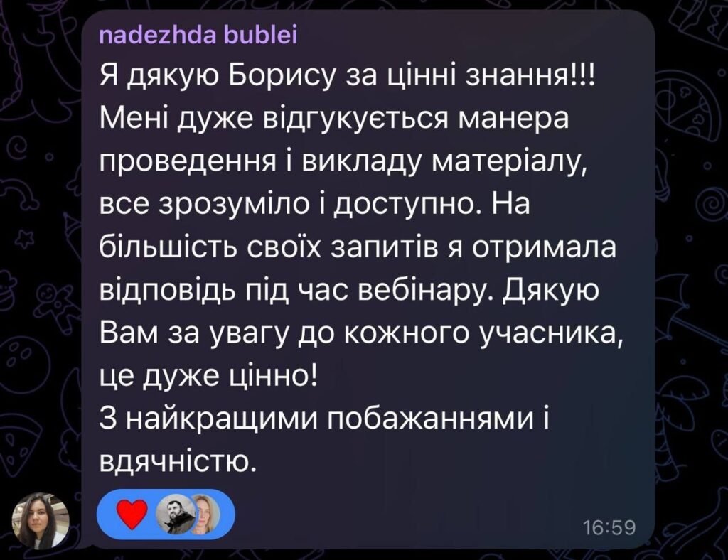 Дякую за підтримку, терпіння, щирі поради та віру в мене. Завдяки Вам я отримала не лише сертифікат, а й величезний заряд мотивації рухатися далі та вдосконалюватися! ❤️😘