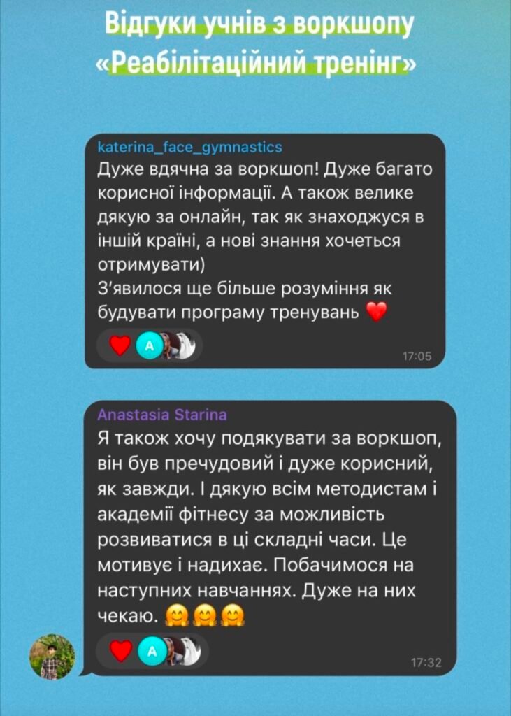 Я з Академією фітнесу вже давно і кожного разу на навчанні відчуваю себе дуже комфортно: легка подача та цінність матеріалу, відношення викладачів завжди приятельське, зворотній звʼязок роками 🙏🏼